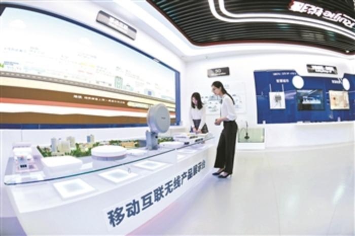 参观者在一家高新技术企业了解最新移动互联无线产品。