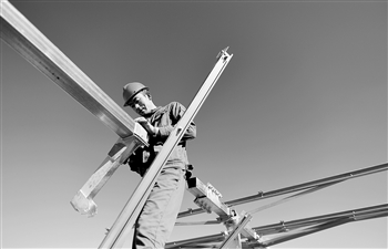 12月15日,在青海省海南藏族自治州共和县中国大唐集团有限公司30万千瓦竞价光伏项目的现场,工人在进行安装作业。寒冬时节,这一项目正在加紧施工,确保早日并网发电。新华社记者 张宏祥 摄