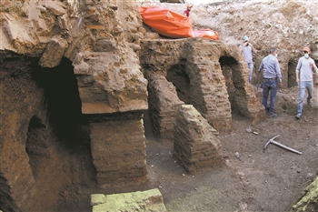 近日,工人在约旦首都安曼市中心开挖排水系统时,发现了一处古罗马时期建筑遗址,包括古罗马浴场、地窖和焚烧间。图为12月14日,考古人员在遗址挖掘现场工作。