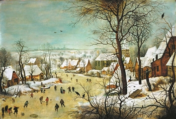 图为《冬景、溜冰者和鸟陷阱》 1565 。