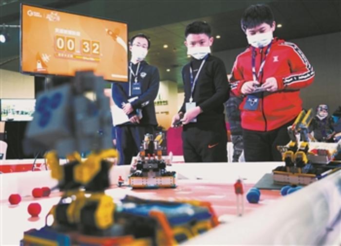 中小学生比拼机器人“火星探索”