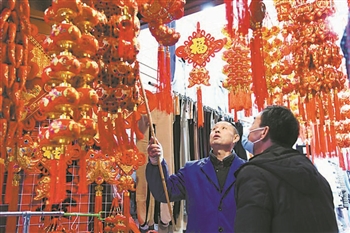 12月19日,安徽省合肥市城隍庙小商品批发市场,顾客在选购新年饰品。随着新年临近,合肥城隍庙人气渐旺,众多消费者前来选购中国结、新年挂历等。 本报通讯员 方好 摄