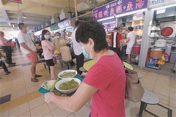 12月17日,食客在新加坡竹脚小贩中心购买食品。 新华社发(邓智炜 摄)