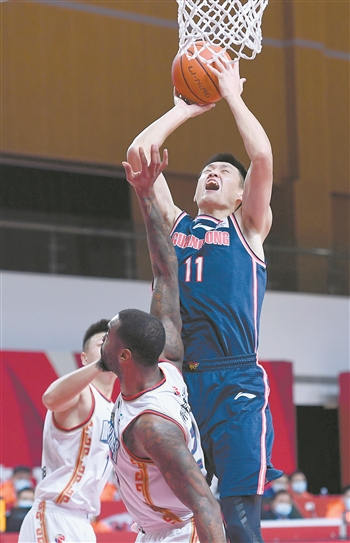 12月21日,广东东莞大益队球员周鹏(上)在比赛中上篮。