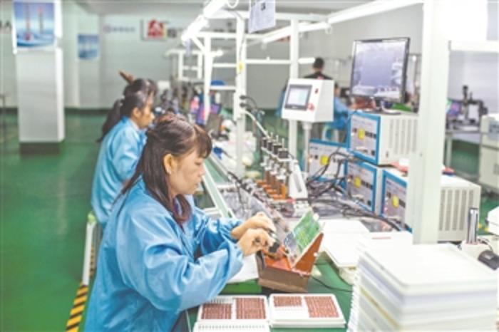 图为搬迁群众在会泽县钟屏街道一家电子扶贫工厂工作。