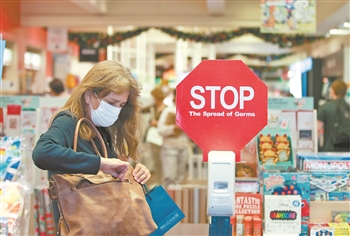 12月22日,顾客在澳大利亚悉尼一家商店的防疫提示牌前消毒。圣诞节和新年前夕,悉尼及周边地区再现本地传播新冠病例且感染人数增加。