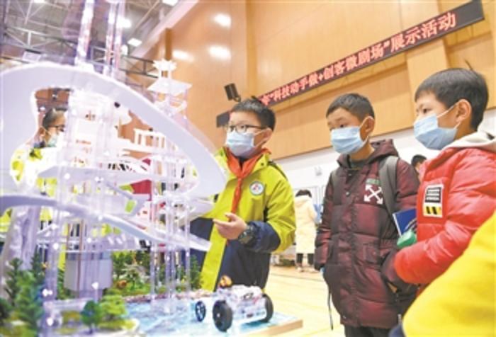 当日,安徽省合肥市蜀山区举办2020年“科技动手做+创客微剧场”展示活动,55件中小学学生作品参加现场演示,展现孩子们眼中的未来“智能城市”。
