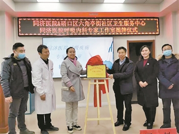 12月16日,“同济医院呼吸疾病专家工作室”在武汉市硚口区六角亭街社区卫生服务中心揭牌。据悉,这是华中科技大学同济医学院附属同济医院两个月内在硚口区开设的第6家专家工作室,为居民提供全方位全周期的健康服务。鲍捷 摄