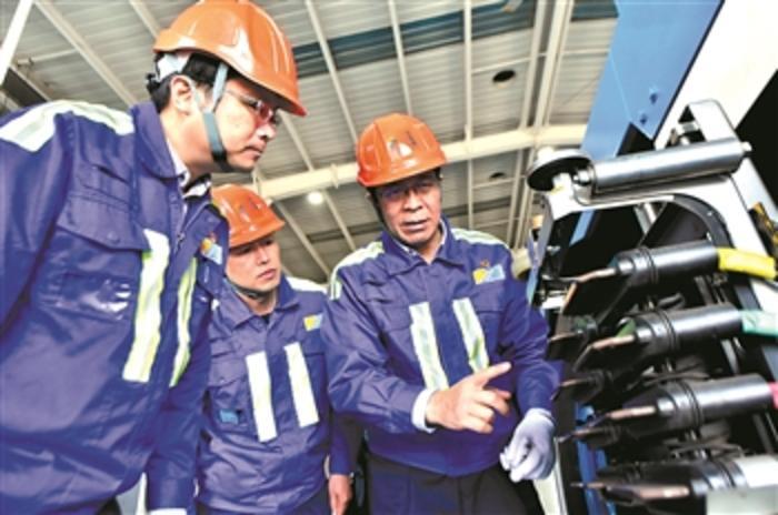 “连钢创新团队”在现场研究创新。本报记者 张嫱 摄