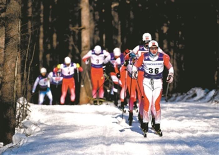 12月29日,参加第19届中国长春净月潭瓦萨国际越野滑雪赛的选手在比赛中。