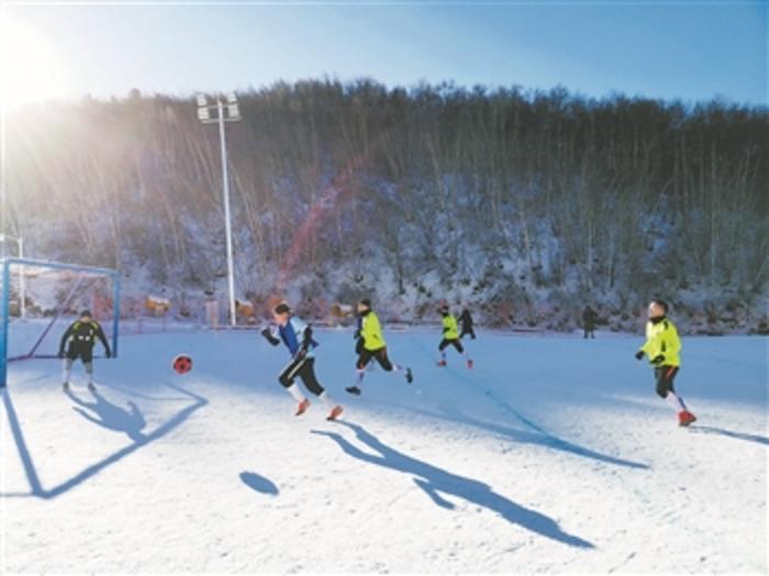 图为河北省冰雪运动会雪地足球比赛现场。本报记者 李元浩 摄