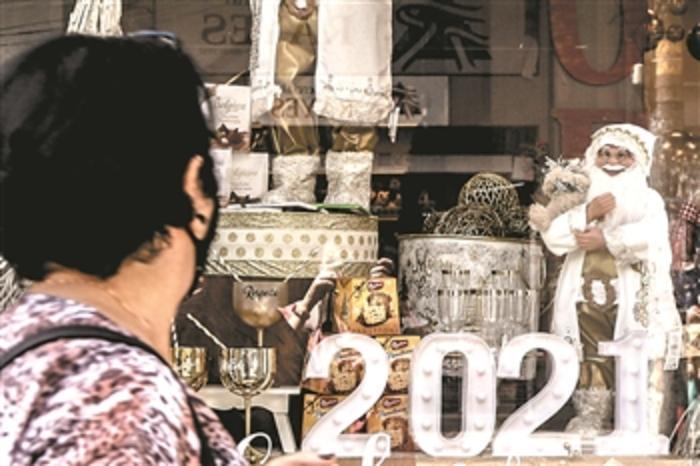 12月28日,巴西圣保罗一家店铺的橱窗内摆出“2021”字样。