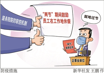 国务院联防联控机制综合组印发《关于做好2021年元旦和春节期间新冠肺炎疫情防控工作的通知》,鼓励员工在工作地休假。各地政府做好留在工作地的职工春节期间保障工作。为春节期间加班的职工依法支付加班工资和调休。