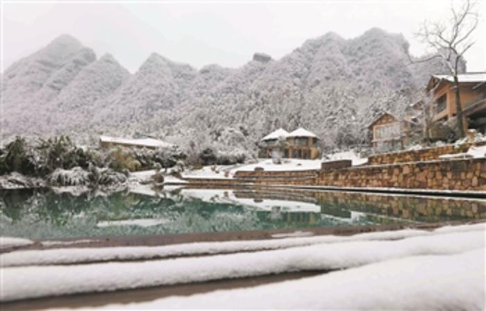这是2020年12月4日拍摄的张家界市武陵源区山区民宿雪景。一些位于山区的民宿吸引游人前往休闲放松,品味乡野冬日情趣。