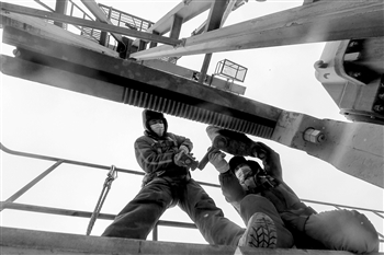 1月2日,在位于新疆塔克拉玛干沙漠的中国石化西北油田采油三厂TH10128井,数十名员工正在合力拆卸抽油机作业,为即将开始的修井做准备。新年伊始,西北油田仍有数千名干部员工坚守在各井站岗位上,他们克服“死亡之海”里气温低、风沙大等恶劣环境,抓安全、消隐患、抓执行、提效率、忙措施,为推进千万吨级大油田建设奉献力量。