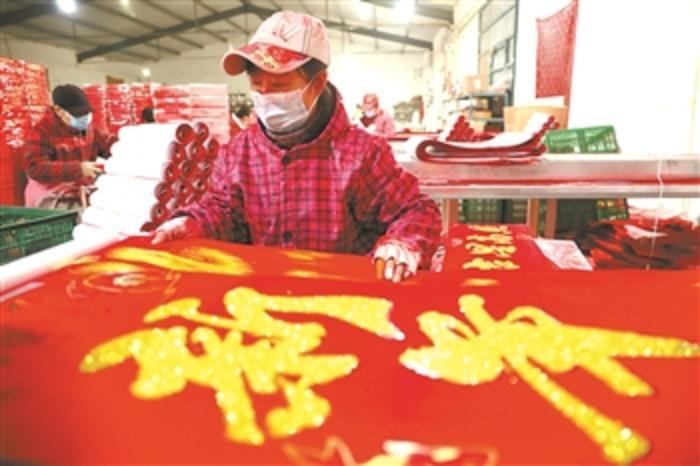 1月5日,河南省焦作市温县赵堡镇赵堡村的农民在包装春联。