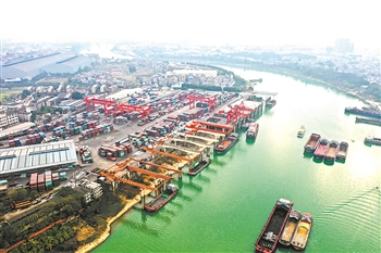 这是1月5日拍摄的广西贵港港(无人机照片)。