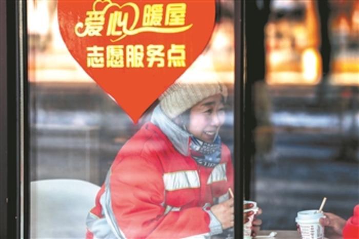 据介绍,随着气温不断降低,天气越来越寒冷,该市水磨沟区在沿街商户和门面房开设“爱心暖屋”,为环卫工人、快递小哥等户外劳动者及路人提供志愿服务。