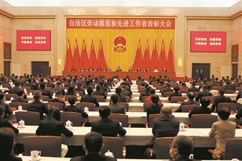 宁夏回族自治区劳动模范和先进工作者表彰大会现场。