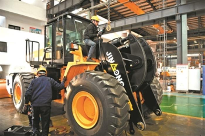 1月12日,工作人员在福建泉州晋江一家大型机械制造企业车间内生产装载机。该企业2020年享受各项税费优惠政策后,累计投入研发费用2136.14万元。