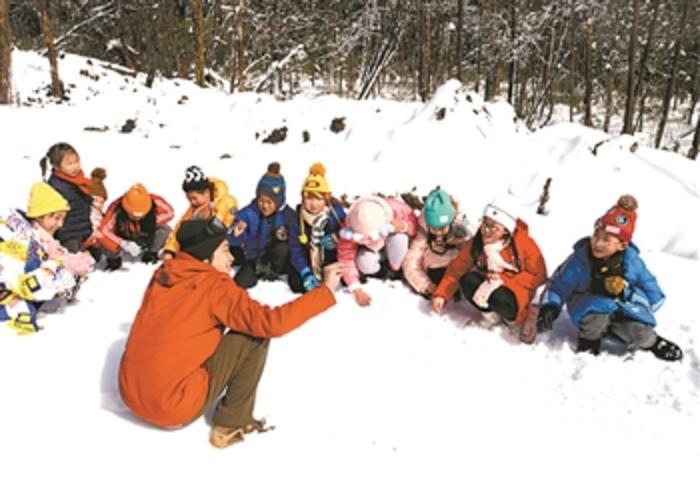 1月13日,来自四川省荥经县胡长保小学的学生在熊猫森林国际探索学校的营地里,寻找和识别野生动物脚印。近年来,荥经县依托自然资源优势,开展丰富多样的自然教育项目,促进全域自然教育发展。新华社记者 江宏景 摄