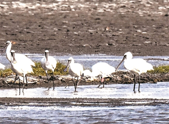 当日,海口畓榃湿地研究所和海南观鸟会的工作人员在进行2021年海南越冬水鸟同步调查时,在海南乐东莺歌海盐场发现数只黑脸琵鹭。黑脸琵鹭属于全球濒危珍稀鸟类,也是国家二级保护动物。
