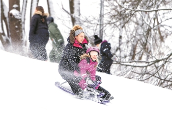 瑞典首都斯德哥尔摩连日降雪,市民纷纷带着孩子走出家门到雪中玩耍。 新华社发 (魏学超 摄)