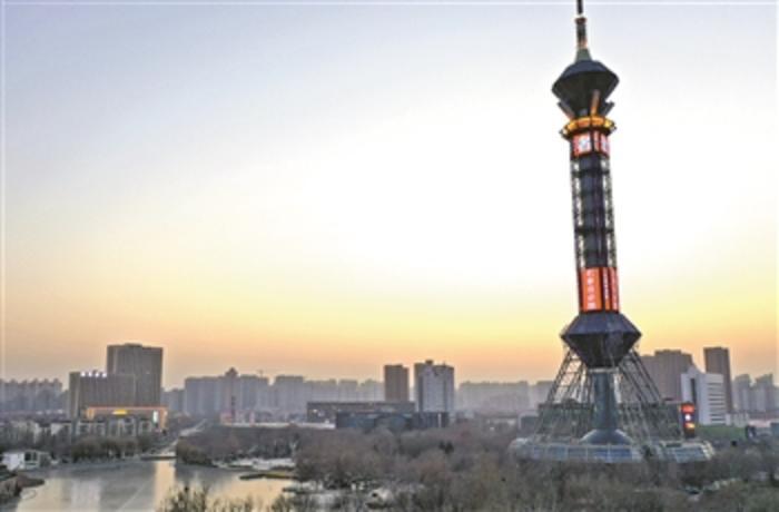 近日,河北石家庄电视塔大屏幕上打出“石家庄加油”“众志成城 防控疫情”等标语,为抗疫加油。