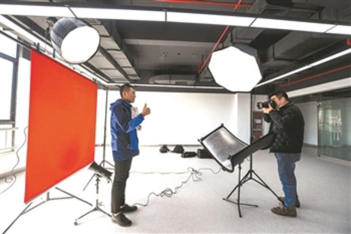 1月19日,在浙江省义乌市苏溪镇的一家企业内,摄影师给留下过年的外地员工拍摄照片,准备作为笑脸家书寄给家人。