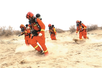 近日,中国石化西北油田治安消防中心展开冬季野外驻训,增强应急处置核心能力,为油田安全保驾护航。这次冬训设置58个科目,充分结合特勤融合式训练模式,逐个对所涉实训科目查不足补短板。图为手持GPS的气防员搜救应急演练。 张俊 杨东辉摄