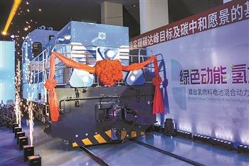 当日,我国自主研发的首台氢燃料混合动力机车,在中车大同电力机车有限公司成功下线。