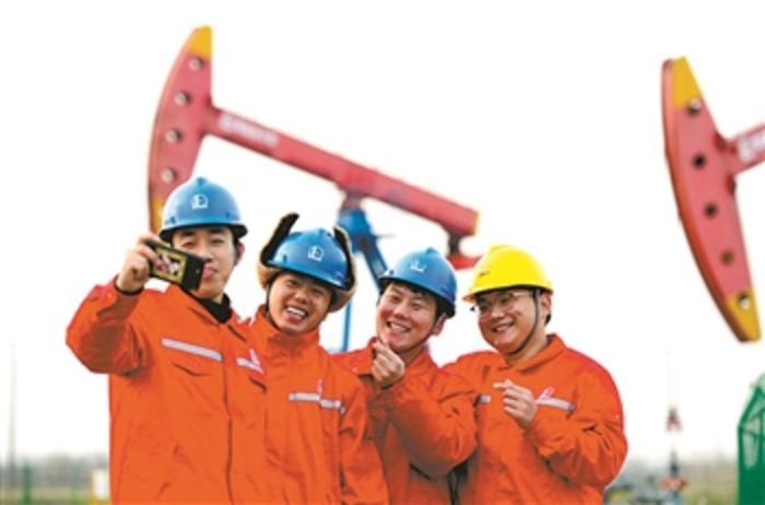 1月30日,位于江苏泰州的中国石化华东石油局泰州采油厂4名刚入职的员工在草中1-6井生产平台拍照发给家人。今年,这4名员工响应疫情防控要求,放弃回家乡过春节。为了让放弃回家乡过春节的员工感受到大家庭的温暖,华东石油局工会为他们准备了丰富的年货。 沈志军 摄/人民图片