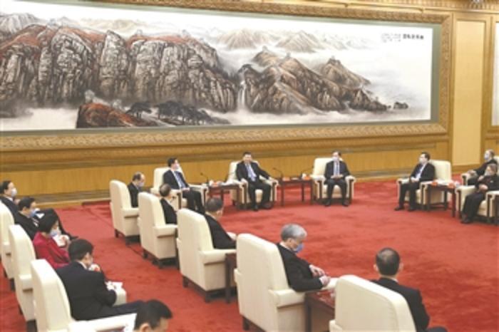 习近平强调,中共十九届五中全会为我国未来5年及15年的发展指明了方向,为全面建设社会主义现代化国家擘画了宏伟蓝图。希望大家充分发挥人才荟萃、智力密集的优势,开展战略性、宏观性研究,为中共中央决策提供更多务实管用的对策建议。要借鉴脱贫攻坚民主监督的好经验、好做法,谋划部署好新的专项民主监督工作。全国工商联要围绕促进非公有制经济健康发展和非公有制经济人士健康成长的主题履行职责、发挥作用,加强政治引领和思想引导。要发挥党外知识分子的专业优势,在做好疫情防控和推动经济社会发展等方面作出新的贡献。