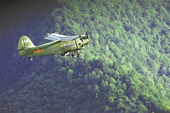 运-5飞机飞越秦岭播区,察看飞播成果(2010年6月20日摄)。 新华社发 (张树华 摄)