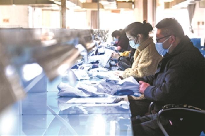 2月3日,在位于诸暨市的浙江丰悦针纺有限公司车间内,来自另一家企业的“共享员工”正在拣货、包快递。
