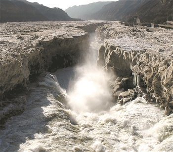 近日,受气温回升影响,黄河壶口段冰消河开,冰封了近一个月的壶口瀑布再现奔腾咆哮的壮美雄姿。