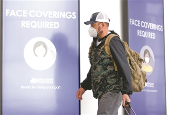 ③ 2月2日,在美国弗吉尼亚州阿灵顿的罗纳德·里根华盛顿国家机场,旅客戴着口罩走在航站楼内。美国航空运营商和其他多数公交部门已经要求乘客戴口罩。疾控中心说,违反“口罩令”的人可能面临刑事惩处,但疾控中心“强烈鼓励”自愿戴口罩并支持采取民事惩处措施。 新华社发 (沈霆 摄)