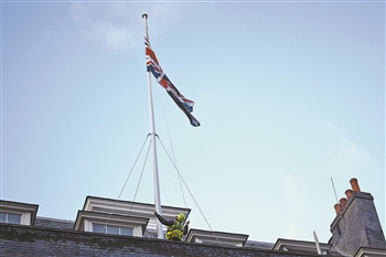 2月2日,英国伦敦的唐宁街10号首相府降半旗致哀。 新华社发 (英国首相府 供图)