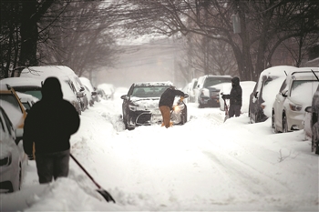 2月1日,在美国纽约,人们清理车辆和路面上的积雪。