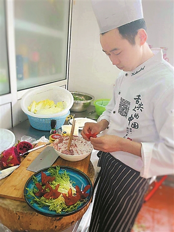 作为朱力的同行,今年29岁的陆晓耀来自重庆市开州区,已经注册餐饮管理公司的他2009年从工地出来后,开始在上海的饭店后厨洗碗、打盒、传菜、炒菜,2016年开始接触家宴厨师行业。从业多年,他不仅考取了国家高级厨师技工证书(三级),工资相对以前也实现了翻倍。