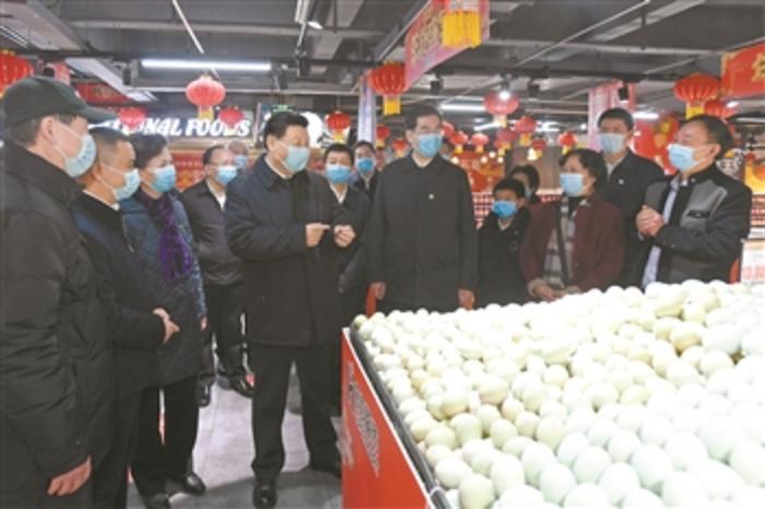 前来置办年货的群众热情向总书记问好。习近平亲切询问大家年货备齐没有。习近平强调,各级党委、政府和领导干部要把事关百姓切身利益的事情抓实抓好,尤其要落实防疫措施,加强食品安全监管,确保百姓过年安心、放心、舒心。