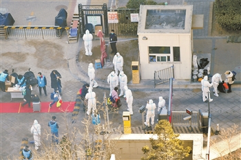 图为2月5日,解除集中隔离的大兴区融汇社区居民返回社区。