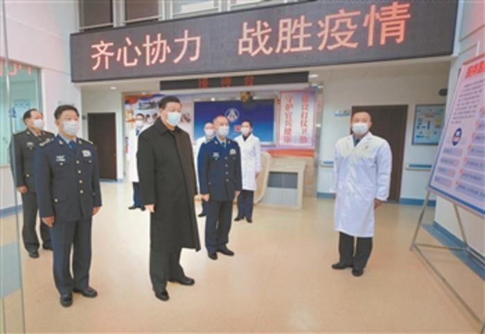 习近平到场站医院了解部队疫情防控和支援地方防疫情况。 新华社记者 李刚 摄