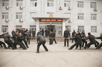 近日,太原铁路公安局秦皇岛公安处积极开展“迎新春、凝警心、保平安”文体活动,活跃了大家的文化生活。这是干警们正在进行拔河比赛。张晓峰 摄