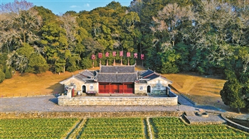 冬日里,本报记者驱车来到福建省龙岩市上杭县古田镇社下山。一座单层悬山顶砖木结构的古建筑依山而建,掩映在层层绿荫之中,后山坡上“古田会议永放光芒”8个大字,在阳光的映射下熠熠生辉。
