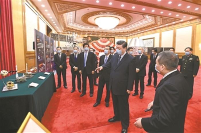习近平在会见探月工程嫦娥五号任务参研参试人员代表并参观月球样品和探月工程成果展览时强调
