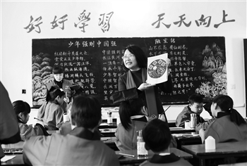 2月21日,在位于诸暨市马剑镇上和村的侯门山乡村图书馆,陈可英指导留守儿童做手工。