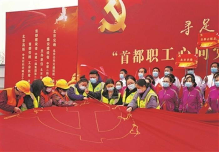 2月28日,由北京市总工会主办的“首都职工心向党 同心接力绣党旗”活动启动仪式在中建一局北京城市副中心二期建设工地举行。