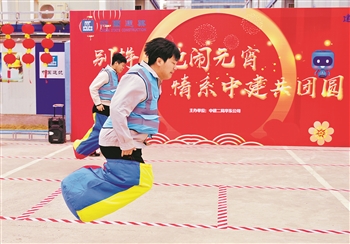 除了赏花灯、猜灯谜和做汤圆等元宵节的传统项目之外,“袋鼠跳”是其中特别有趣的一个项目。随着裁判一声哨响,工友们双手提着麻袋,连蹦带跳地向目的地奔去。激烈的比赛将热热闹闹的元宵节氛围推向高潮。