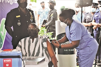 3月1日,加纳副总统巴武米亚在首都阿克拉接种新冠疫苗。西部非洲国家加纳3月1日开始为本国卫生工作者等接种新冠疫苗,成为首批接种通过“新冠肺炎疫苗实施计划”(COVAX)获得的疫苗的国家之一。